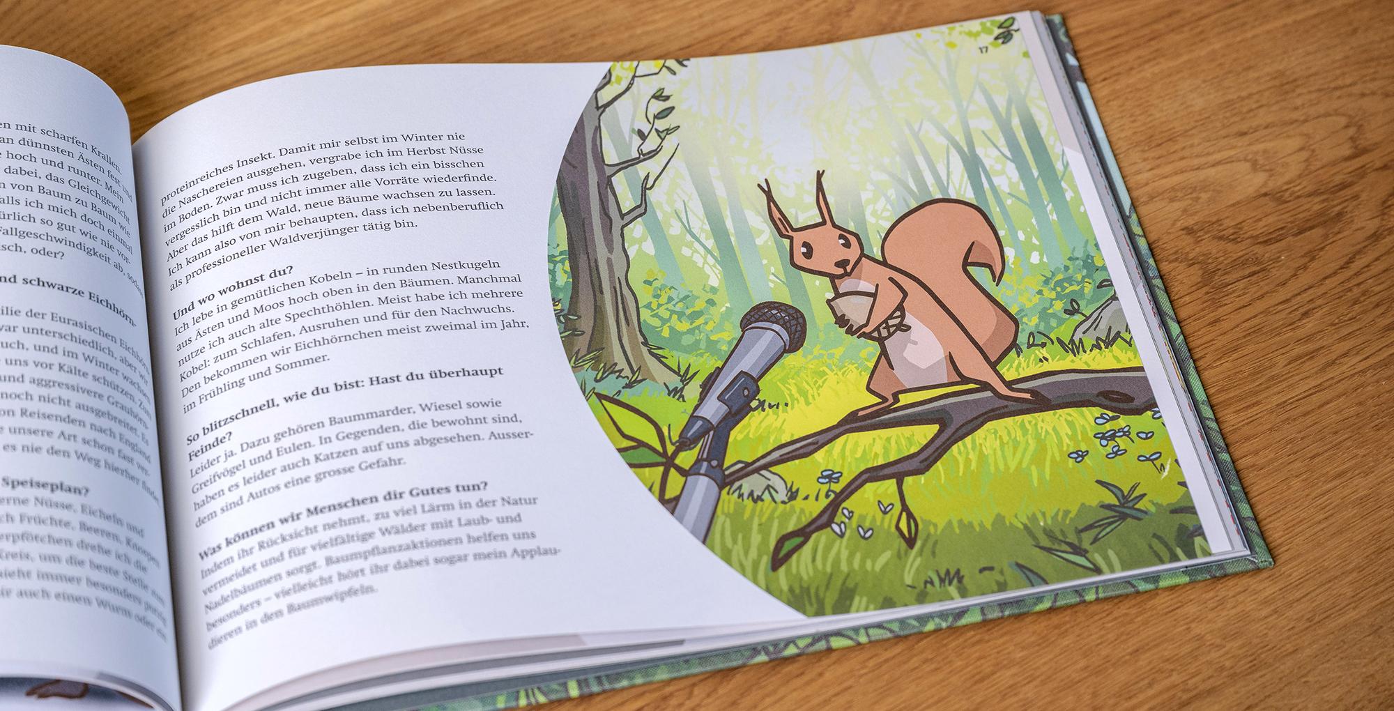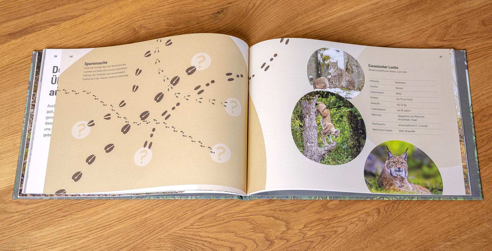 Von der ersten Gestaltungsidee bis zur druckfertigen Umsetzung begleiten wir dieses Buchprojekt. Wir entwickelten ein stimmiges Layout inkl. Umschlag, Einlageblättern, Lupe und Tasche. Die Typografie und Bildsprache sorgen dafür, dass jedes Detail zum Charakter des Buches passt. So entstand das neue Lesebuch für Kinder, mit tollen Tiergeschichten, Rätseln und wissenswerten Fakten.